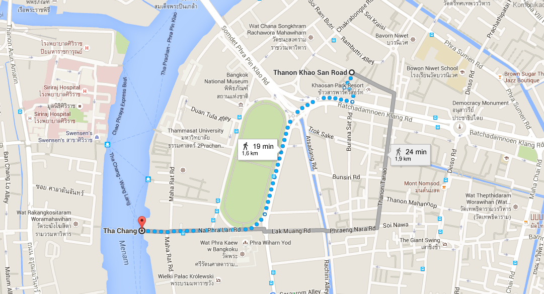 Mapka obrazująca schemat działania taxi boat w Bangkoku przypominała ni mniej, ni więcej, jak sieć kolorowych linii, z których połowa się na siebie nakładała. Po 30 minutach prób rozgryzienia tajemniczej plątaniny dałyśmy za wygraną i stwierdziłyśmy, że z transportem w Bangkoku chyba już po prostu tak jest i trzeba zdać się na intuicję. Człapiąc w 40 stopniach i chłodząc się jedynie butelką wody świeżo wyjętą z lodówki w sklepie 7/11 zmierzałyśmy w kierunku przystani mijanej już jednokrotnie podczas zwiedzania Wat Pho.